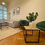 A fully equipped kitchen features coffee and tea making facilities, along with a microwave, a refrigerator, and kitchenware for self-catering purposes. Jakabov palac bus stop can be found at a distance of 350 metres from this apartment.